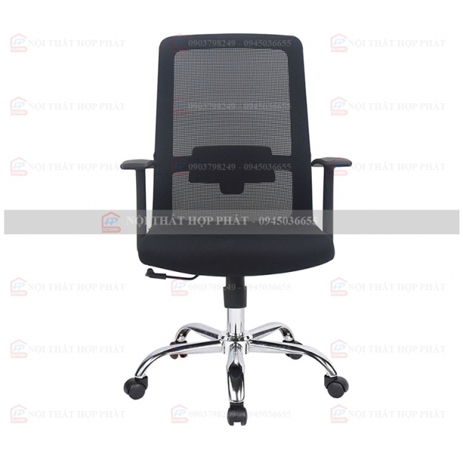 Ghế lưới nhân viên cao cấp, đệm mút xốp bọc vải, tựa nhựa bọc vải lưới, tay ghế bằng nhựa cố định.