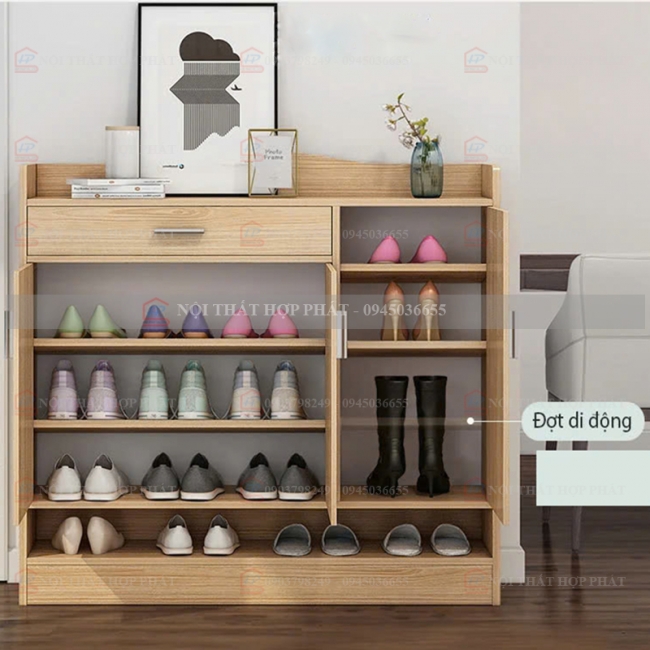Tủ giày có thiết kế thông minh, nhỏ gọn không làm tốn diện tích. Giúp cho căn phòng trở lên sang trọng hơn, sắp xếp giày dép gọn gàng ngăn nắp.